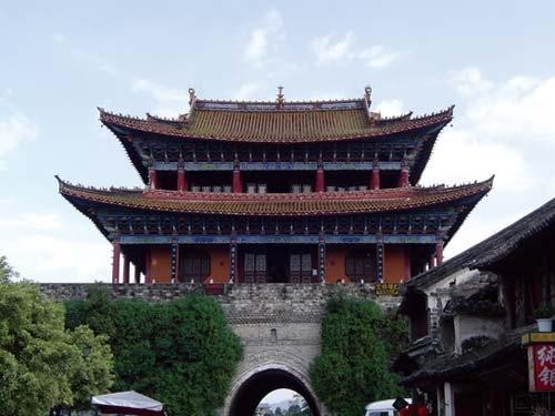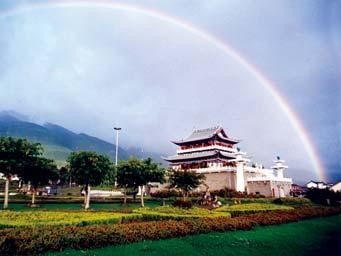 大理古称“叶榆”,源于西汉。元封二年(前109年),汉武帝刘彻为开发西南,在此地设置了叶榆县,所以大理古城又称"榆城"。 历史上的南诏国、大理国都曾在这里设都,成为我国西南边陲的重要门户。现存的大理古城为明洪武年间(1368--1398年)所建。大理有南北城门,城内是石板路,主大街纵贯南北,街道两旁青瓦屋面,民居、商店、作坊等相联。 沐浴着高原初冬的阳光,在满街飘荡的葫芦丝乐曲声中,一路游览来到南门,只见谯楼高耸,城墙沧桑,幽深的城门上,楣悬大理二字。城门口的广场上,三三俩俩的白族少女,身着她们民族的盛装,一脸笑意地面对游客。我不太明白她们在做什么生意,误以为也象十里洋场样,“骑马倚斜桥,满楼红袖招”。再一细看,不象!姑娘们虽然个个花容月貌,可那眸子里是纯净的,眼神是无邪的,笑意是由衷的,跟今日满大街“休闲屋”里的小姐比,不可同日而语。一打听,原来她们都是出租女郎,即把自己租给游客们合影留念的。这在其他地方我未从见过,借用时髦话说,也算是此地的一道风景线吧。