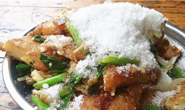 路边的焦香炒糕粿,保证你喜欢!可以让店家给你撒上糯米糖,也可淋上辣酱,要甜要咸,自己做主。