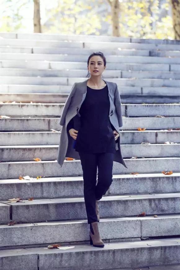 深灰色西装外套+打底衣+裤装谁说高圆圆只有女神温柔熟女的一面?!这次她用深灰色西装外套打造出帅气又中性的feel!潇洒利落!