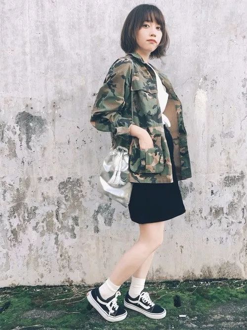 用迷彩色打造工装感再合适不过,有的人会认为迷彩色而不好搭配,但只有你穿上身之后才会发现迷彩其实很百搭~