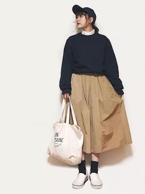 觉得工装太man的女生完全可以用裙子mix一下,像绿裙卡其裙都是不错的选择哦!