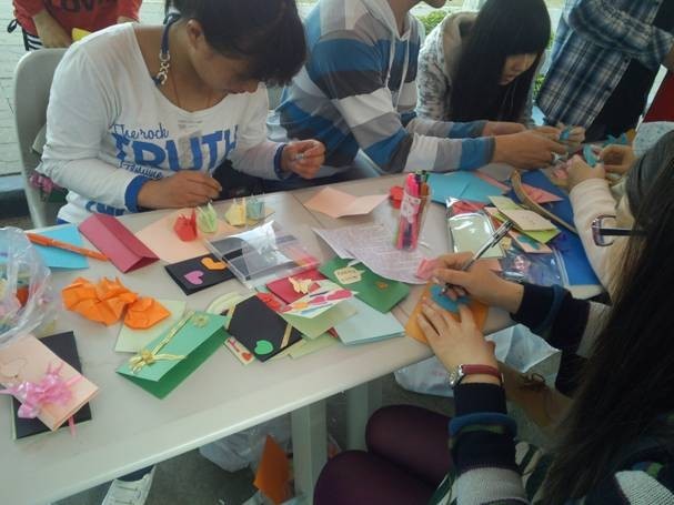 活动包括DIY教学、DIY贺卡、电影宣传、抽奖送礼、女生心愿墙等内容,丰富多彩的活动得到广大同学的积极响应,一时间,来自各个学院的能工巧匠在工作人员的指导下制作出很多精美小贺卡,同学们将亲手制作的贺卡送给那些在各个工作岗位上辛勤劳动和默默奉献的老师、清洁阿姨和宿管阿姨们。这些带着祝福与感恩的贺卡,体现了广大学生对老师们的热爱,体现了他们对那些平日里默默无闻建设着我们美丽校园的基层工作者的感谢。