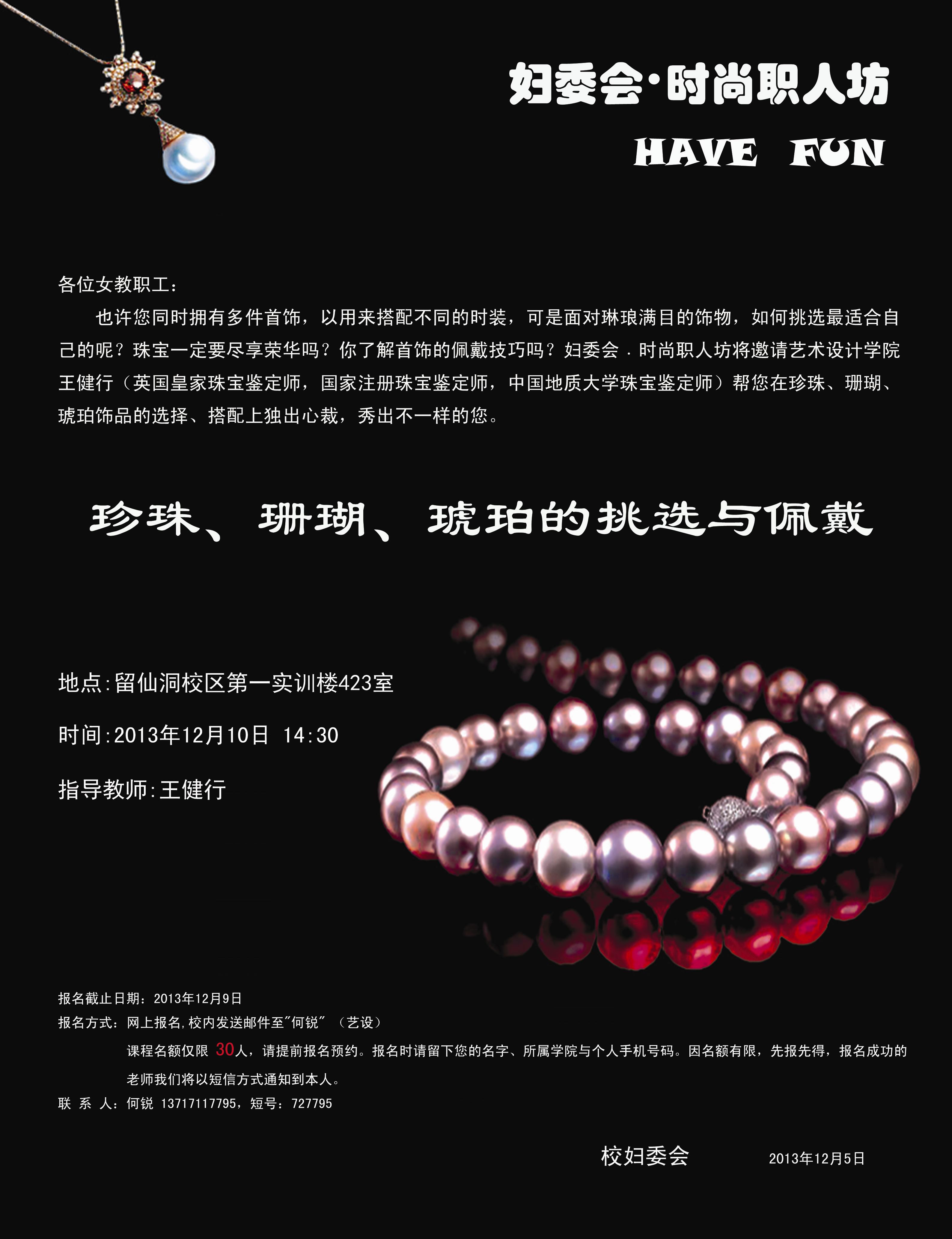 珍珠、珊瑚、琥珀的挑选与佩戴讲座活动通知