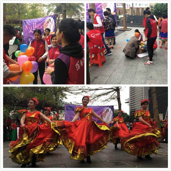 为庆祝第107个“三八”国际妇女节,2017年3月8日,外语学院组织志愿者服务珠光社区“妇女节快乐秀”活动。