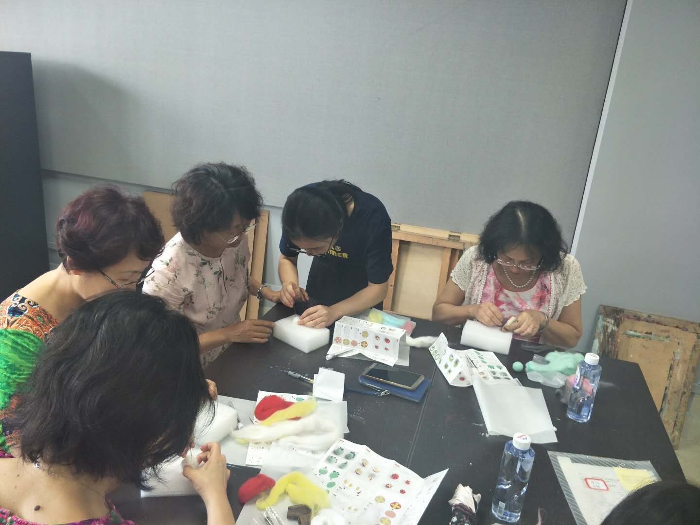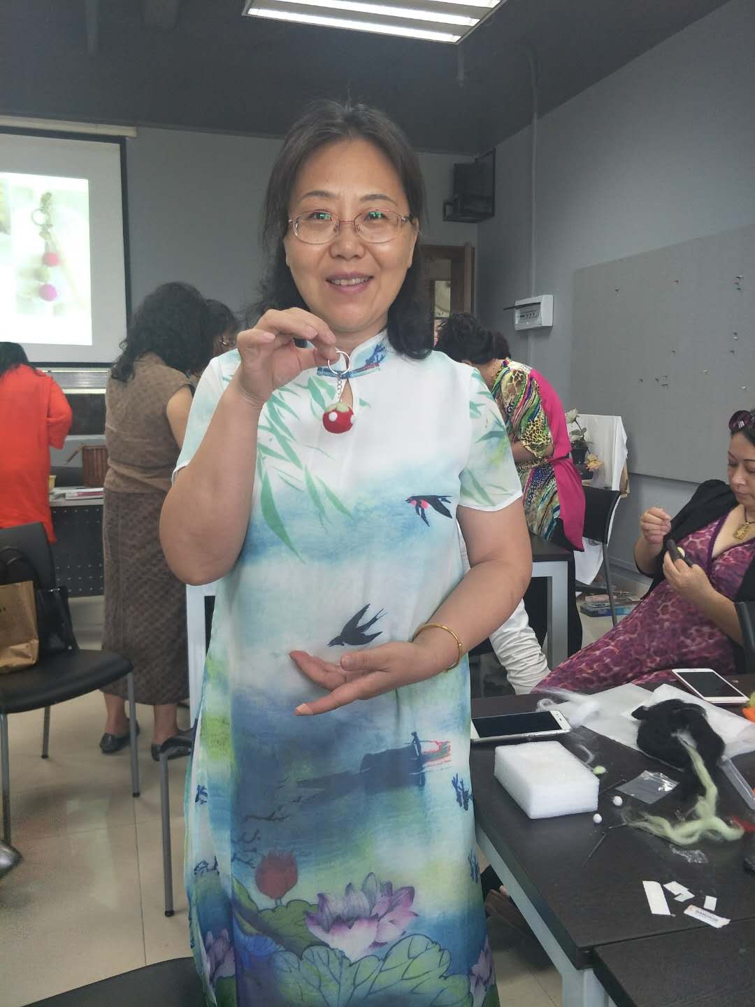 羊毛毡手工是利用纯羊毛材料制作的各种手工作品,可以造型出玩偶、娃娃、首饰等物件,近年来其以色彩丰富、制作工艺简单、造型变化多样在欧美日本等国家流行开来。目前羊毛毡手工在国内还属于较为新鲜的手工门类,本次活动陈教授以介绍基础阶段的羊毛毡球体和变化应用引导大家对此类材料手工制作入门。活动中,陈教授给大家介绍了羊毛毡的种类、特性并教授初级阶段的戳球针法。从视频观看到手把手的指导,陈教授耐心解答老师们的疑问。整场活动大家都积极参与其中,现场氛围轻松愉悦。活动接近尾声时老师们都做出了自己满意的作品并互相交流制作心得。(校妇委会 校工会女职委)